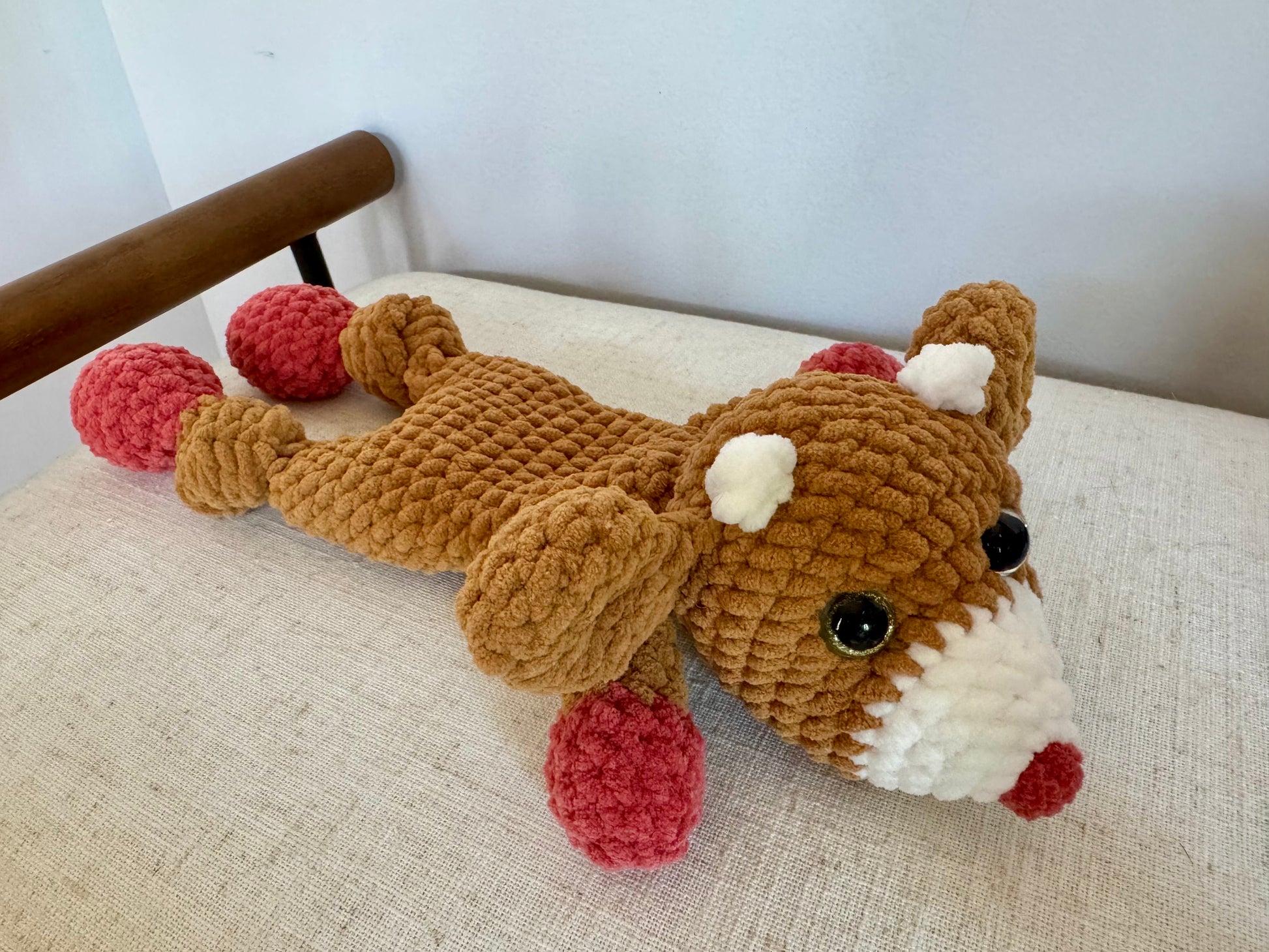 Meet Rudy — the happiest accident you’ll ever want to snuggle. Originally based on The Friendly Red Fox’s Giraffe Snuggler pattern, Rudy was born when I ran out of the “right” yarn… and the result? A squishy, soft reindeer full of character and charm!